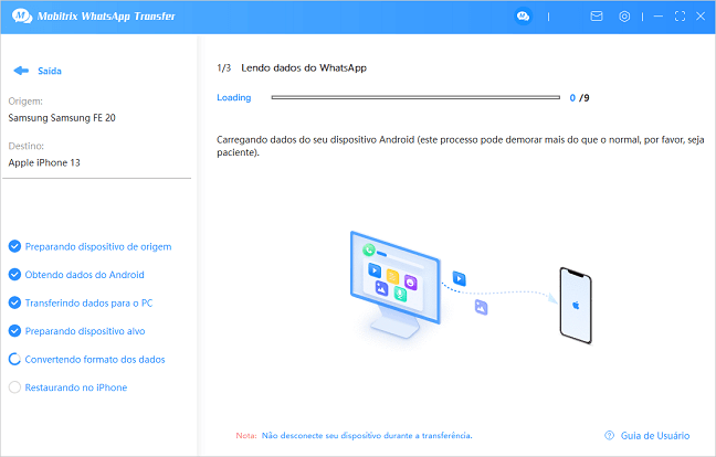 - As mensagens do WhatsApp vão ser copiadas para o computador, convertidas e restauradas para o seu novo dispositivo, seja um iPhone ou Android.