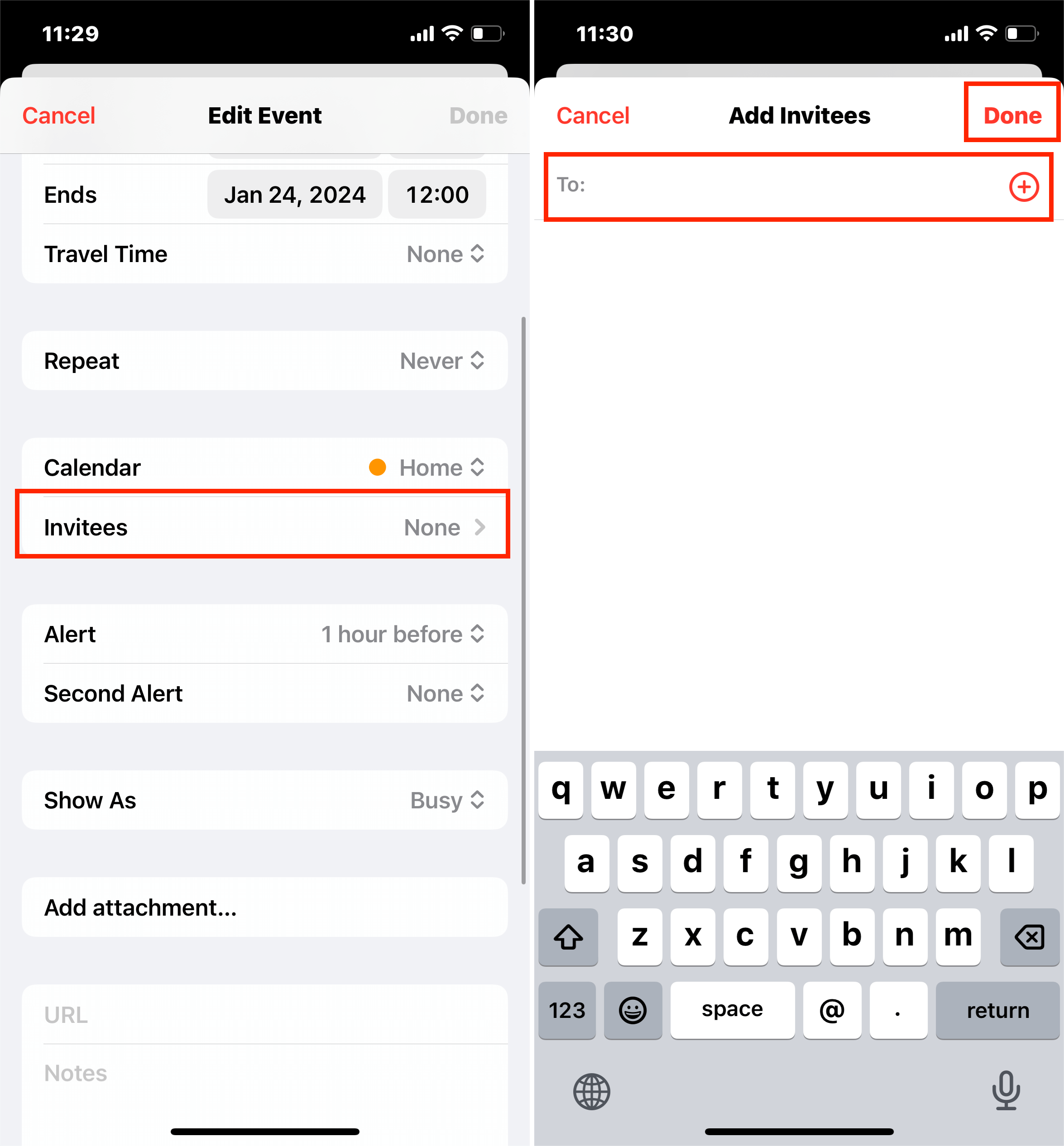 Note: Invited people must have an Apple ID and use iCloud to access a private calendar.