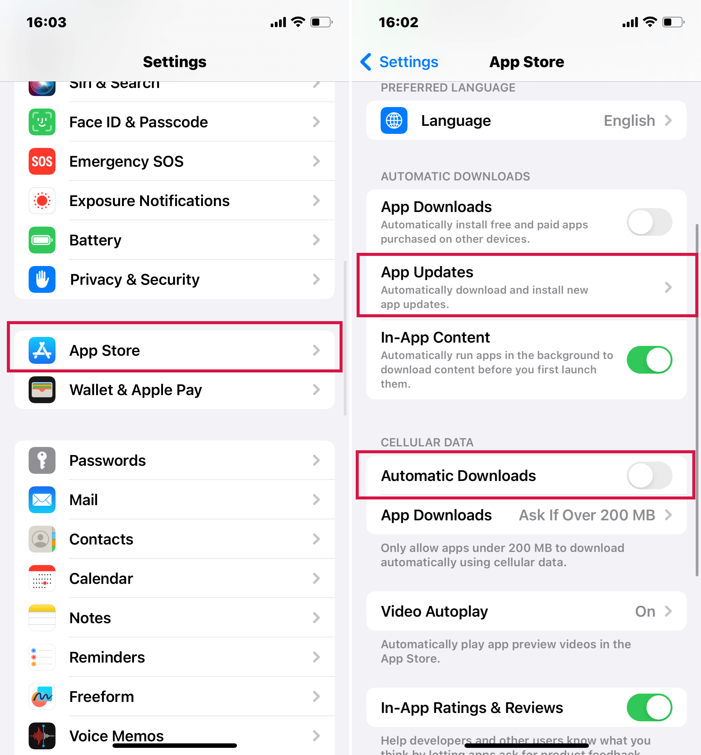 In "Settings" > "App Store," turn off automatic downloads and updates over cellular data.